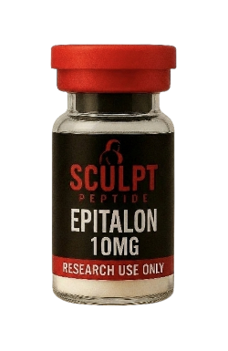 Epitalon 10mg is an investigational synthetic tetrapeptide (Ala-Glu-Asp-Gly) originally associated with peptides derived from the pineal gland. It has been the subject of preclinical research due to its proposed involvement in cellular signalling pathways linked to circadian regulation, cellular longevity, and genomic stability. Scientific interest in Epitalon centres on its potential influence on telomerase-related mechanisms, oxidative stress pathways, and age-associated cellular processes within controlled research environments.