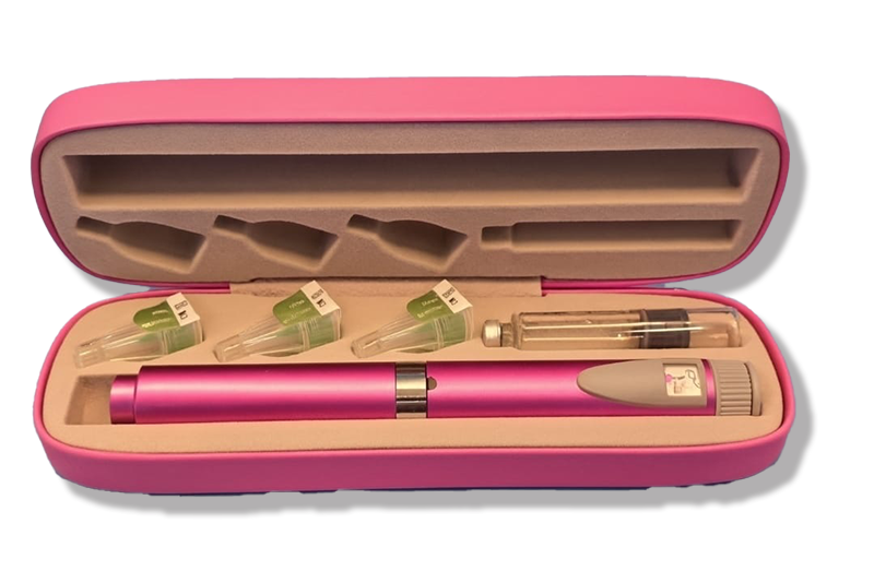 This complete kit includes a durable, reusable Peptide Pen, designed for accurate and easy delivery of research peptides. It comes with three 3ml cartridges, fine 32g needles, alcohol wipes for skin preparation, a filling syringe, and a fitted case to keep everything safe and organized.